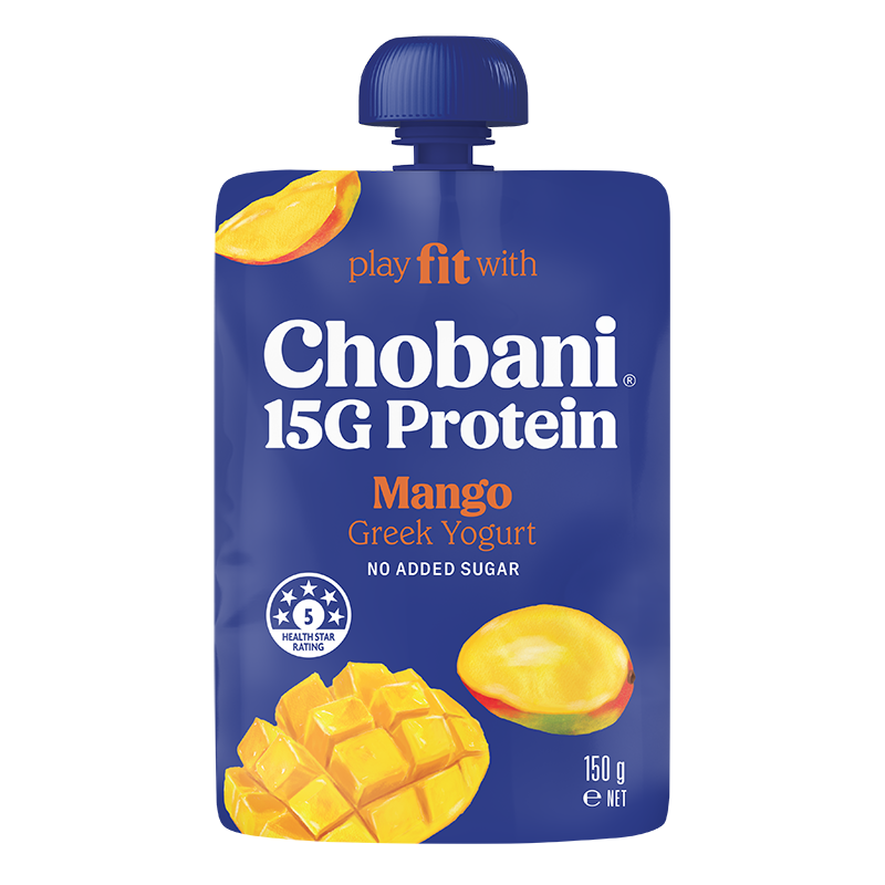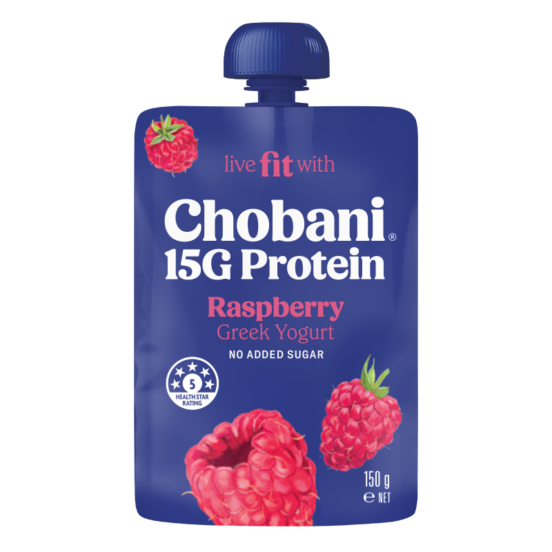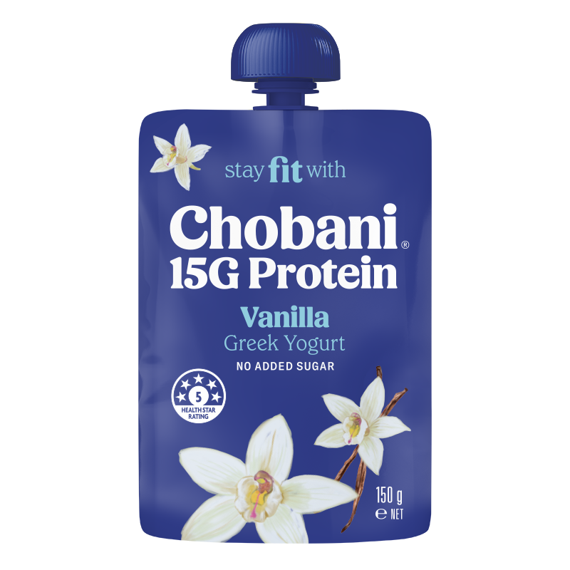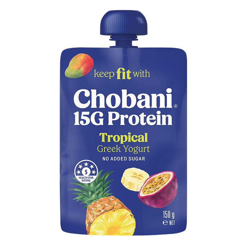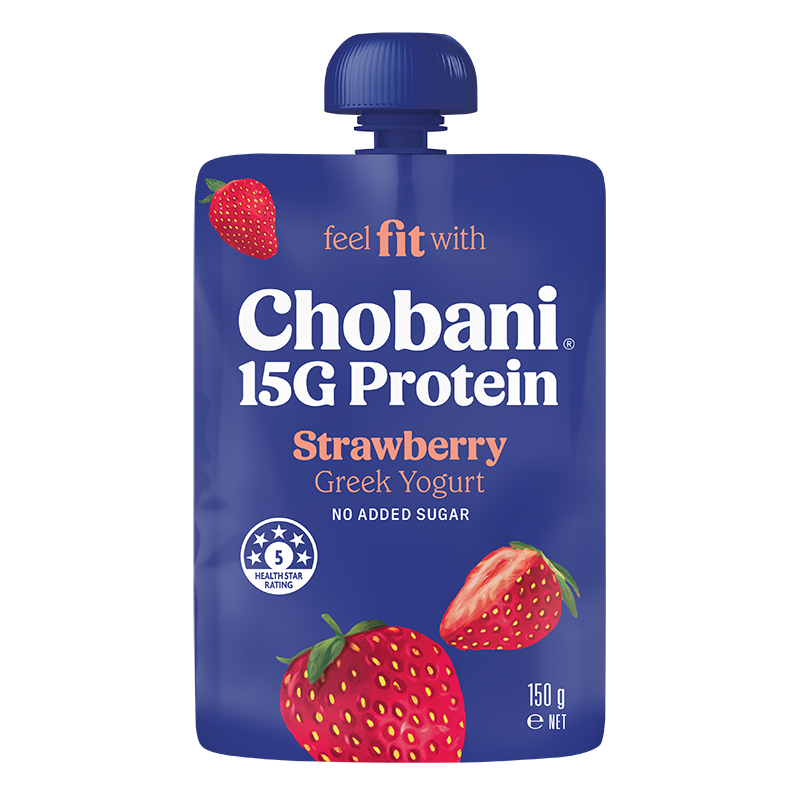 Chobani® 15G Pouches Enjoy authentically strained High Protein Greek Yogurt that is deliciously thick & creamy, packed with 15G of natural protein per serve, no added sugar and is lactose free. Perfect for on the go! TropicalBananaStrawberryMangoVanillaRaspberry